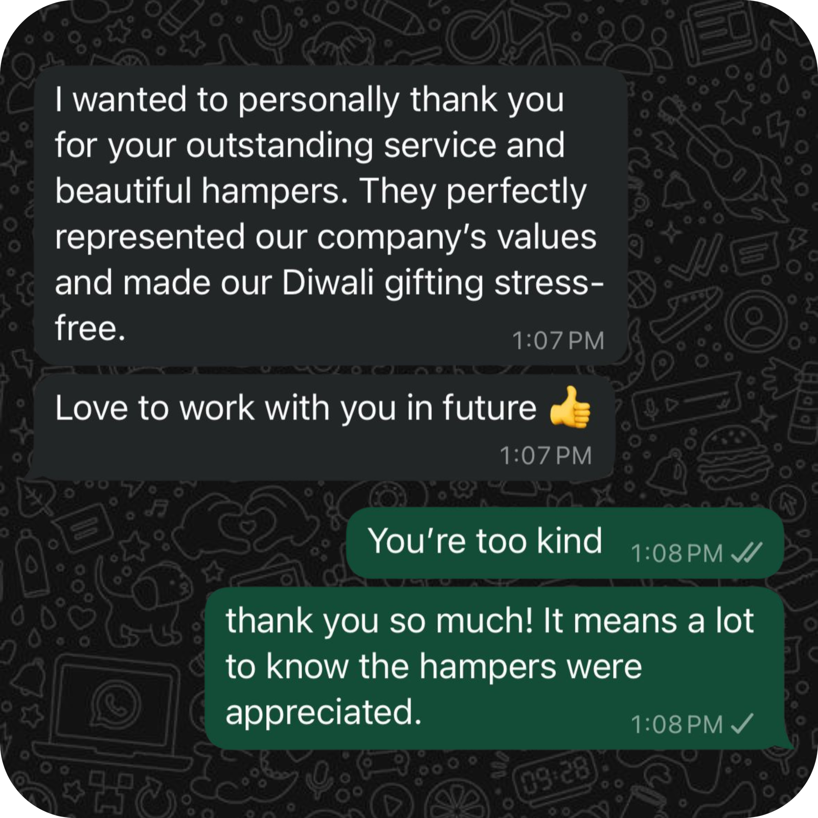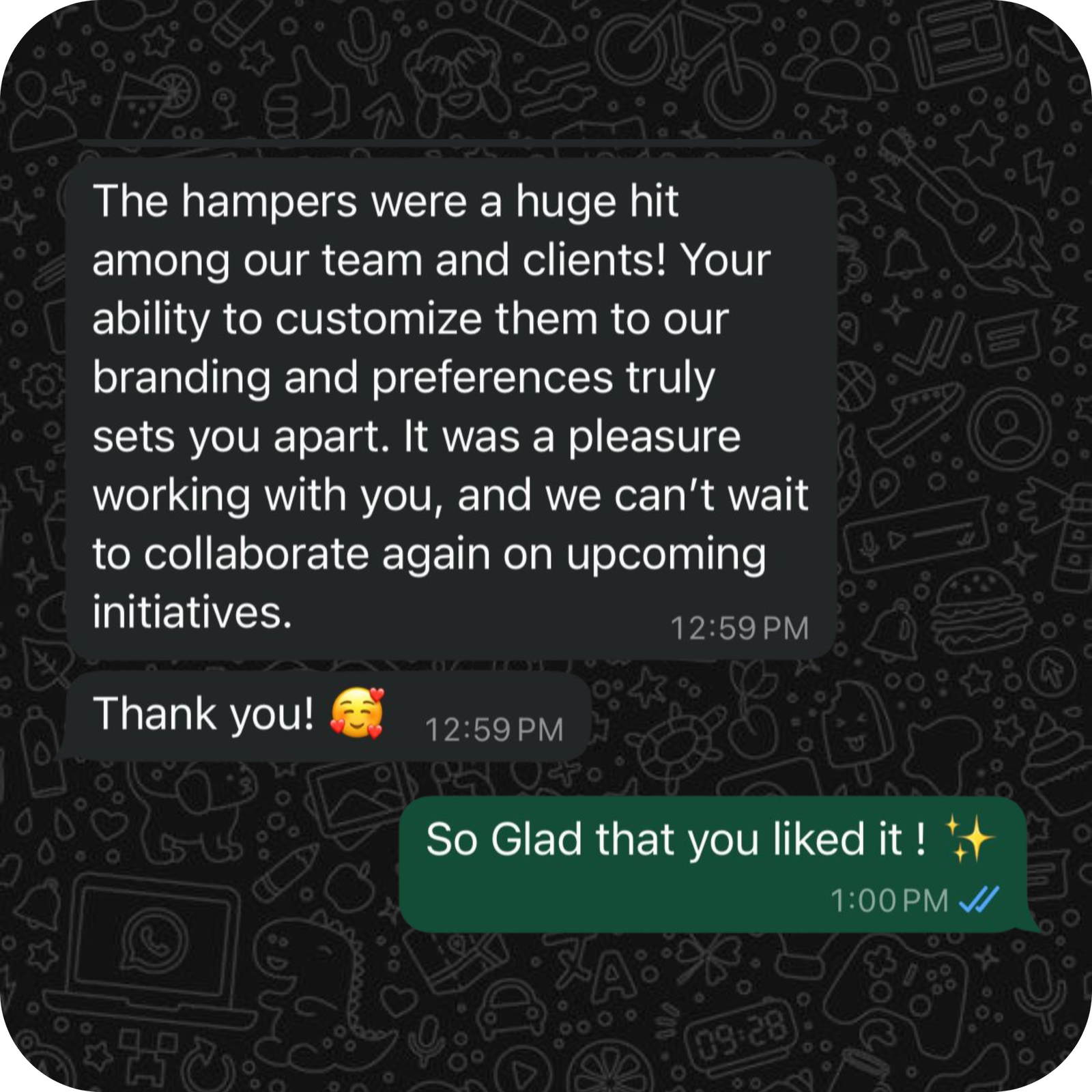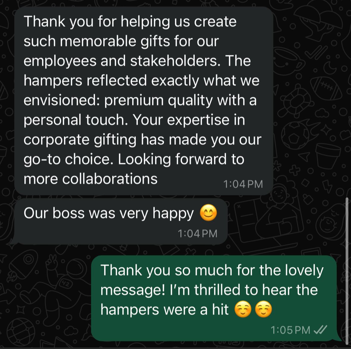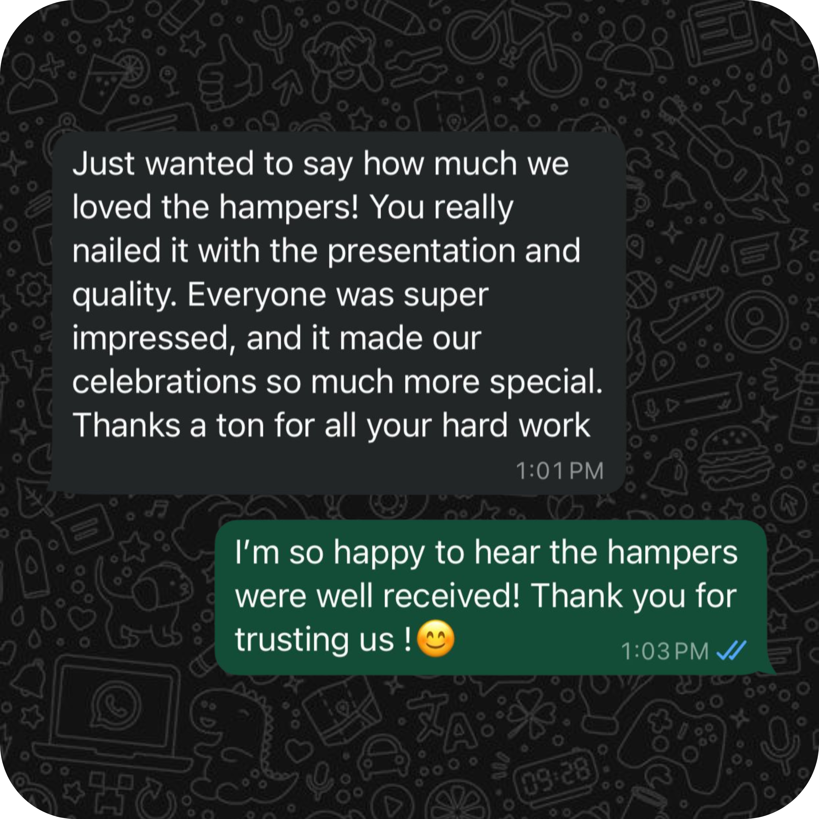 Celebrate milestones with hampers of premium treats, branded gifts, and personalized tokens. Perfect for employees and clients! !